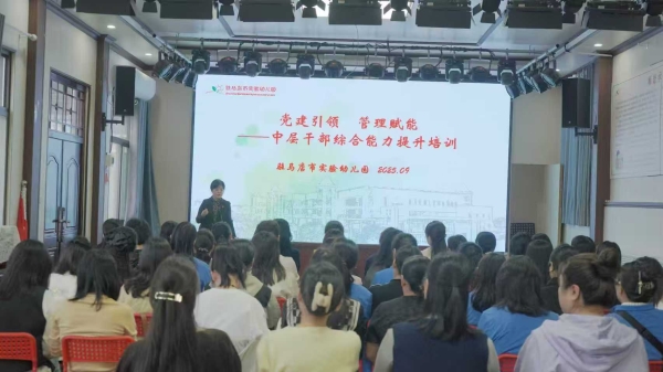 针对幼儿园中层干部这一“兵头将尾”的关键角色,园长吴秋颖重点明确作为幼儿园中层干部与一线教职工连接纽带的核心定位,强调需通过精准角色认知与能力锤炼履行岗位职责:既要以担当奉献为核心,兼具理解园长革新理念、独立思考、推动革新行动、发现解决问题及整合资源的六大关键品质,为履职筑牢根基;也要在角色定位上,当好精准上传下达的“连接器”、激发团队活力的“凝聚者”、专业引领业务的“领头羊”与服务教师成长的“服务者”。 在核心能力与工作方法层面,要求大家抓好“知人善任、营造正向氛围、组织有效教研”的团队建设,强化“保持学习、深入一线、敢于示范”的业务引领,提升“分解任务、跟进调整、处理冲突”的执行力;同时警示需规避沦为“传声筒”、抱有“老好人”心态、“向上/向下/自然人错位”“事必躬亲”“垄断错位”“官僚错位”及脱离一线等九大误区。此外,还需以空杯心态持续学习、以大局观统筹工作、以强抗压能力应对挑战、珍惜岗位平台实现自我成长,最终成长为领导眼中靠谱省心、教师眼中专业温暖、自我认知中持续突破的园所发展“中流砥柱”。