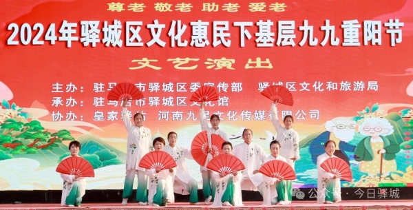 在重阳佳节来临之际,10月9日,由驿城区委宣传部、区文化和旅游局主办,区文化馆承办的2024年驿城区文化惠民下基层九九重阳节文艺活动在皇家驿站大舞台举办。
