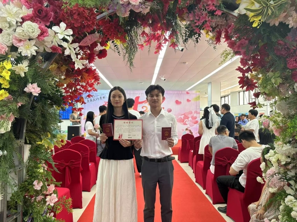 活动现场,大厅内洋溢着浓厚的喜庆氛围,新人们面带笑容,手捧鲜花,缓缓步入这充满爱意的空间。民政局相关负责人现场致辞,祝福新人并寄语未来。新人们并肩而立,手牵手,心连心,宣读誓言,许下了一生一世的承诺。