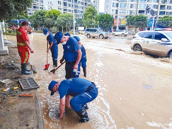 清淤现场,队员们徒手伸进浑浊的泥水中,清理堵塞下水道的杂物,哪怕手臂被划伤也不在乎。 当看到一位怀抱幼童的女子在积水前手足无措时,正在清理垃圾的王振喜立刻放下手中的工具,蹚着齐膝深的积水过去帮忙。 “大家仔细点,一处也不能遗漏。”王得山用沙哑的声音提醒队员们。在7月1日这个特殊的日子里,他用实际行动践行着共产党员的初心和使命。