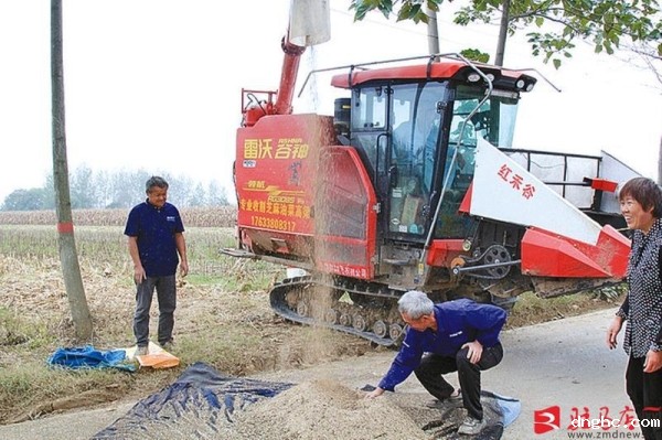 10月9日,在新蔡县孙召镇郎庄村广袤的田野里,机声隆隆,800余亩芝麻迎来了收获期。几台大型联合收割机来回穿梭,开足马力对芝麻进行抢收。(驻报全媒体记者 熊国森 通讯员 杨琳琳 摄影报道)