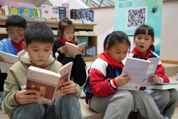 上午9时许,率先到场的孩子与家长便被书架上的书籍吸引,纷纷驻足翻阅,在墨香中感受祖国的历史文化与时代风采,为后续创作积累灵感。