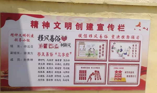 村史馆里溯根源,乡风底色更鲜亮 邓庄村委通过展示村庄变迁、传承优良传统,成为村民特别是青少年了解村史、认同乡俗的“精神地标”。管内设有“旧俗新貌”展区:对比展示村庄过去的陈旧面貌与现在的文明新风,用老照片、实物直观呈现变化。村支书徐远召会给参观的村民讲解“旧俗新貌”的对比。作为村里的“精神地标”,村史馆里藏着邓庄人的“根”与“魂”。 “乡贤榜样”长廊,用身边人身边事诠释着“文明”的分量;村民们常来这里走走,看变迁、学榜样,心里对“该守什么规矩、该树什么风气”渐渐有了谱。