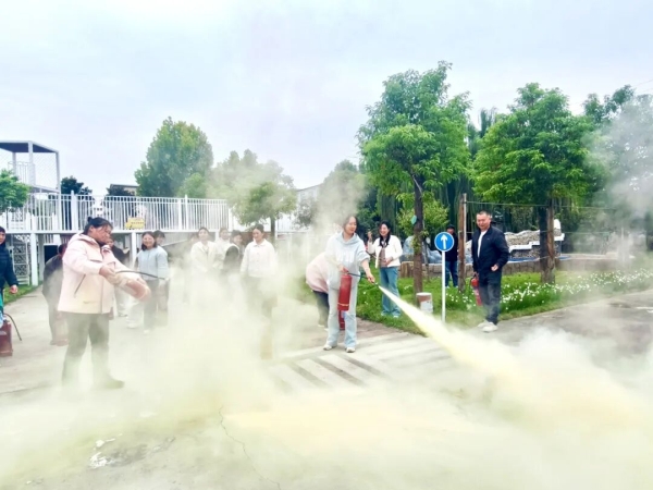 培训现场,培训老师以真实火灾案例为切入点,结合幼儿园教学场景特点,用通俗易懂的语言拆解火灾隐患排查要点。在核心的灭火器教学环节,老师先是手持器材细致拆解构造,从压力表读数识别到保险销拔除技巧,再到“提、拔、握、压”四字操作法的动作要点,每一步均配合示范讲解,确保教职工清晰掌握操作逻辑。针对教职工们提出的“不同火情是否需调整喷射角度”“灭火器过期如何判断”等疑问,培训老师逐一耐心解答。 理论讲解结束后,实操演练随即展开。在模拟火情区域,教职工们依次上前实操:双手平稳提握灭火器,拔下保险销,对准火焰根部精准按压喷射,整套动作连贯规范。过程中,培训老师在旁实时指导,纠正个别人员的操作偏差,帮助大家在实践中巩固技能,真正将“纸上知识”转化为“应急能力”。