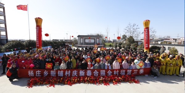 这一天,是新铺村拍摄“全村福”的日子,也是村民们心中最具仪式感的过年方式。自2023年西平县委倡导开展“欢天喜地过大年,晒出最美全家福”活动以来,新铺村积极响应,率先拍摄了“全村福”,并连续三年延续这一传统。对于村民们而言,这不仅仅是一次简单的合影,更是情感的凝聚和家乡发展的生动见证。 全村欢聚 幸福定格 当日中午,村民们吃过午饭后,纷纷带着凳子来到村文化广场。广场上,大红灯笼高挂,铜器队、秧歌队热情表演,村民们手持“福”字,脸上洋溢着幸福的笑容,过年的氛围愈发浓厚。小晴晴穿着华丽的过年服,和奶奶早早地来到广场。她兴奋地在文化墙前的“全村福”照片中寻找自己的身影,童声清脆地喊道:“奶奶,快帮我找找我在哪儿?”“在这儿,在这儿,今年我还要站最中间呢!”她的期待之情溢于言表。村民张金旭一家特意从郑州赶回村里,选择站在离五星红旗最近的位置。张金旭感慨地说:“我们已经连续拍了三年‘全村福’了。这不仅是一次大团聚,更是让孩子们了解家乡、感受乡情的好机会。”像张金旭一样,许多村民不远千里从外地赶回,只为参与这场充满仪式感的团圆活动。