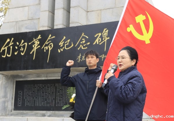 “竹沟革命根据地是中原抗战的摇篮,这里镌刻着刘少奇、李先念等革命先辈的奋斗足迹……”学校党委书记刘向彬的现场党课让历史变得鲜活可触,带领师生穿越时空见证“小延安”的峥嵘岁月,队员代表闫梓欣作为少先队员代表发言,铿锵话语中传递着新时代少年“请党放心,强国有我”的铮铮誓言。
