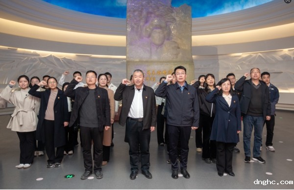 “冰天雪地中,杨靖宇将军带领东北抗联战士与日寇周旋,弹尽粮绝时以棉絮草根充饥,却始终未向敌人屈服……”讲解员的声音低沉而有力。当听到杨靖宇将军牺牲后,敌人剖开他的胃部发现仅有未消化的树皮和棉絮时,许多人眼眶湿润。将军用行动证实“钢铁意志”不是比喻,而是先烈用血肉之躯写就的真实。 参观结束后,全体党员整齐列队,面向鲜红的党旗庄严宣誓,铿锵的誓言在纪念馆内回荡,与历史时空中的英雄呐喊遥相呼应。 活动最后,全体人员缓步走向杨靖宇将军纪念碑,手持白菊,深深鞠躬,将鲜花轻放在碑前。春风拂过,花瓣上的露珠仿佛英雄未曾远去的泪与笑。